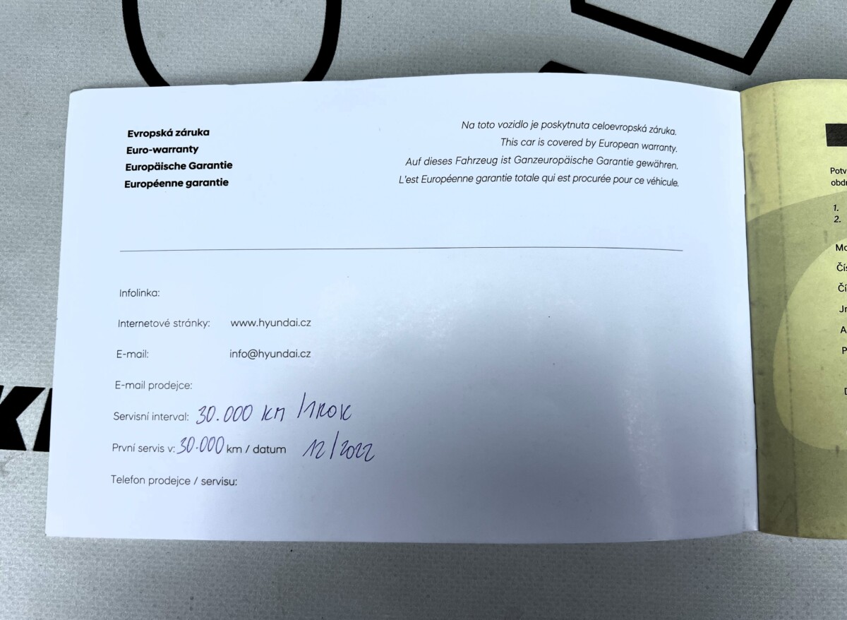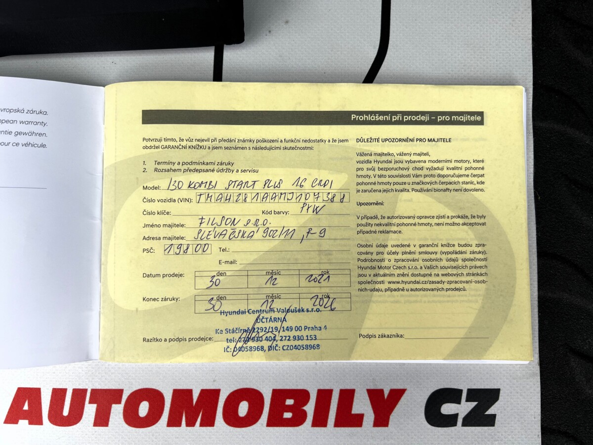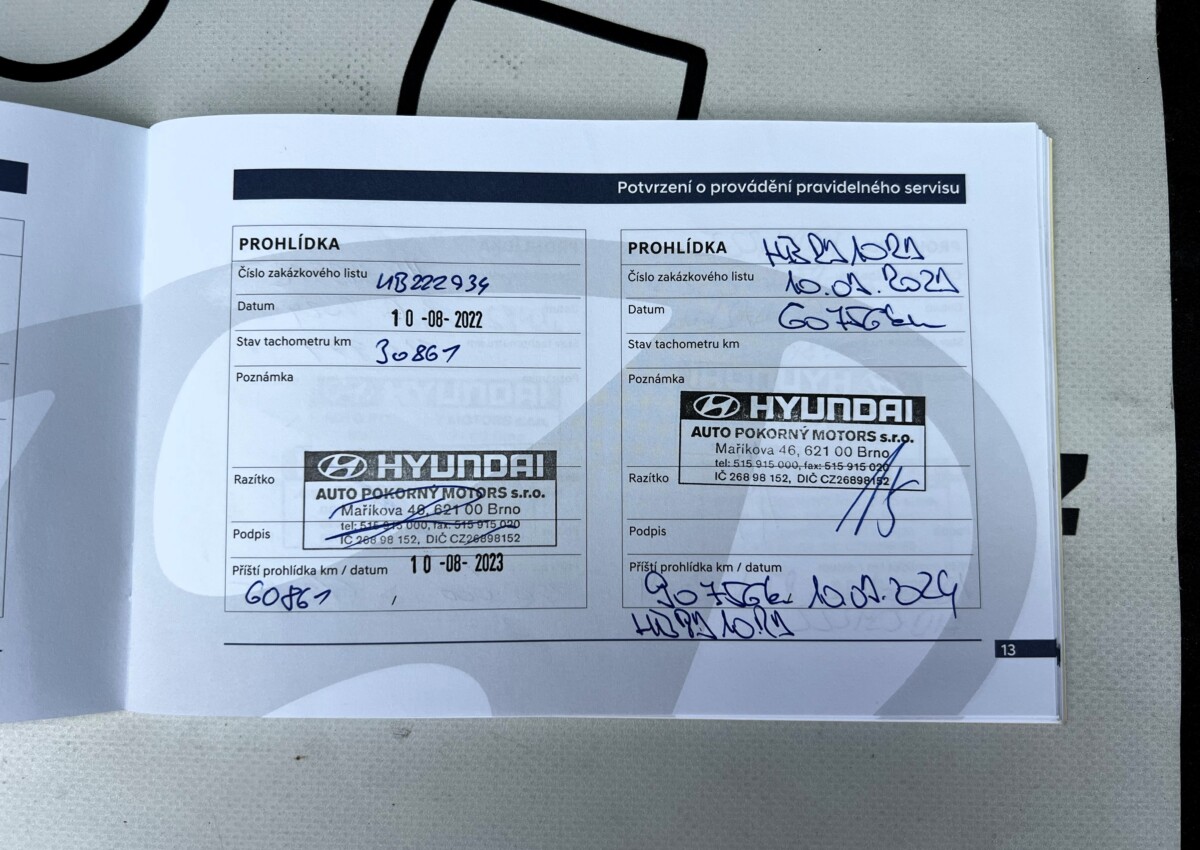 První registrace 12/2021, v provozu od 01/2022. Koupeno jako nové v ČR a po celou dobu jeden majitel. Kompletní sada klíčů a pravidelně vedená servisní kniha k vozidlu. Po celou dobu pravidelný servis pouze v aut.servisu Hyundai. Obuto na pěkných zimních pneumatikách. Absolutně bez koroze a oxidace dílů. Doživotní záruka na původ vozidla a stav tachometru. Výbava Start Plus : klimatizace, hlídání jízdních pruhů, tempomat, palubní počítač, bluetooth, handsfree, LED denní svícení atd.. Motoricky i podvozkově v dobrém stavu. Velmi úsporná motorizace s průměrnou spotřebou okolo 5L/100km. Technická a evidenční kontrola platná do 12/2027. S vozidlem je možnost ihned odjet.
